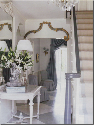 Two things to notice here - the wonderful architectural remnant above the door frame and the painted handrail in a beautiful bluish-grey that correlates to the floor. Again, it just sings!