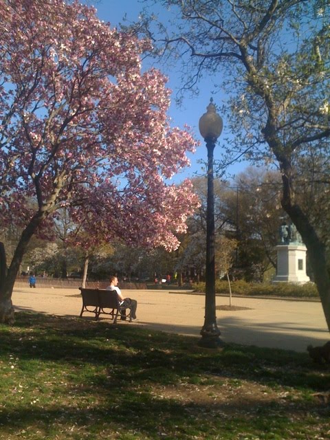 The last photo is from the recent DC Design House. Photos are permitted, but I snuck this one in. How I would love to have a room like this in my house (the Roman shades were made of burlap!). I can imagine returning from our Saturday morning walks and cozying up on this chaise to finish reading the paper.