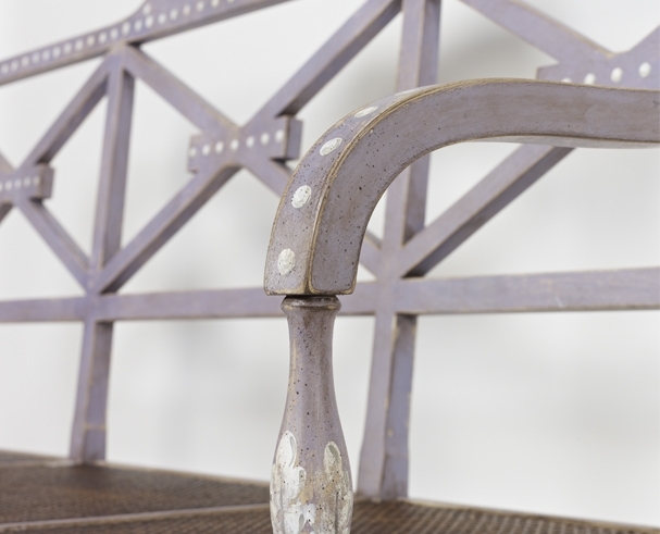 The company specializes in hand-painted furnishings such as doors, panels, bed frames, mirrors, sofas, chandeliers, etc, all inspired by old world Venetian furniture; in their own words, their furniture pieces are "modern presentations of that timeless golden age of painted furniture centered in the 18th Century". True to tradition, all of the handiwork is done in Venice, and the artisans they employ are amazing! They have a line of stocked pieces, but they can also create a custom piece, from frame to paint. They can even take a wallpaper or fabric sample and create a custom finish to match it--any interior designer's dream :) We got to see some truly stunning pieces at the preview, some of which are pictured below.