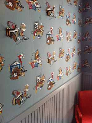 We chose to use this fantastic wallpaper along one wall in her dining room/kitchen. Isn't it fantastic? She has 3 large windows at the end of the room which allows the sun to dance along the metallic gold paper...it's show stopping. We also used this company to create the beautiful chandelier that is a perfect pairing with the wallpaper. I can't wait to show you the rest of the house once it's complete!
