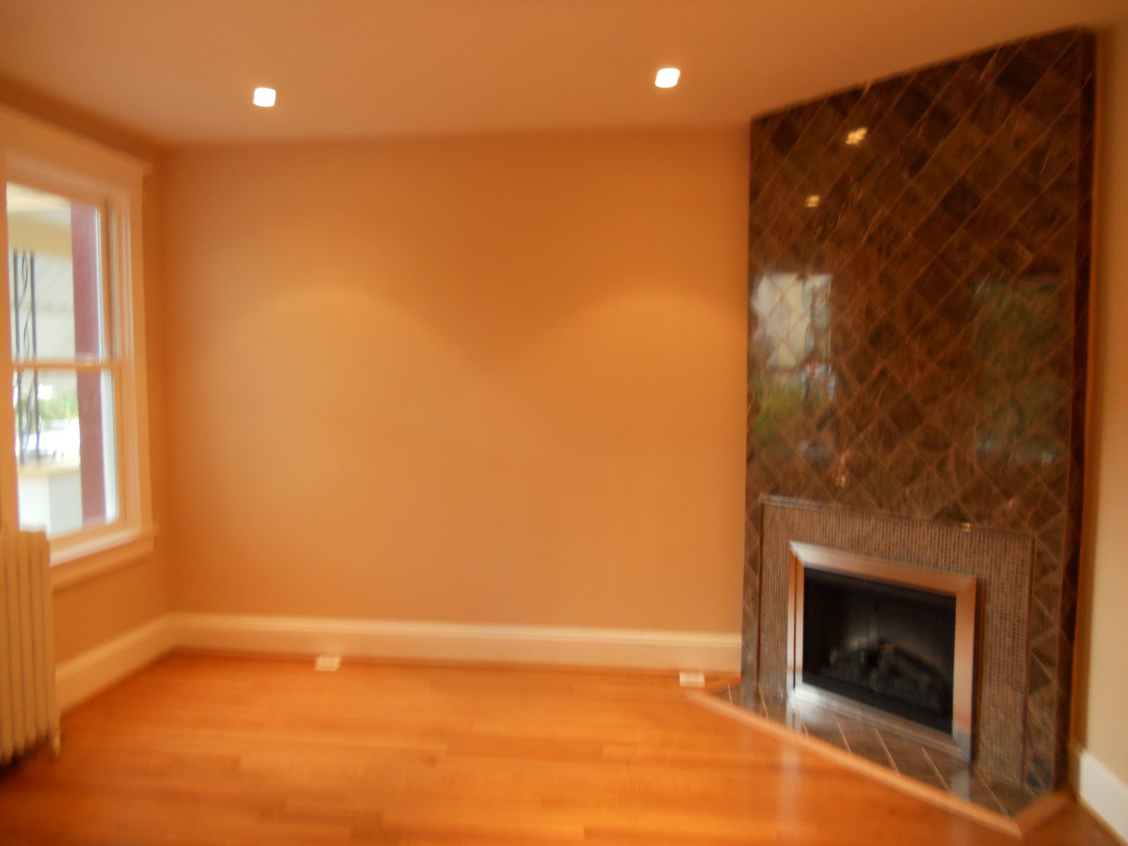 EEK! The house had been "flipped" by a developer, and my clients loved the house except for this front room. Don't let the floor to ceiling bathroom tile around the fireplace charm you, because we ripped that sucker out. It was like a huge, ugly wart that "welcomed" you into the house. Apparently, the said developer was very proud of this masterpiece. I wish I had a picture of the "fireplace" in use as it was basically a mirror that reflected an orange light when the switch was flipped. Are you kidding me??? My clients and I had a lot of fun laughing over that one.